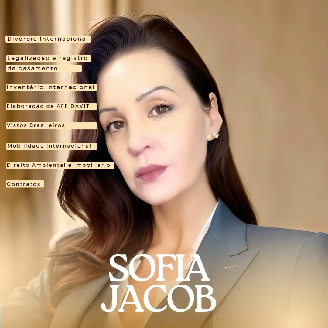 Sofia Jacob é uma advogada de renome com autoridade global em direito internacional, especializada em divórcios internacionais, contratos globais, consultoria jurídica estratégica e sofisticadas.